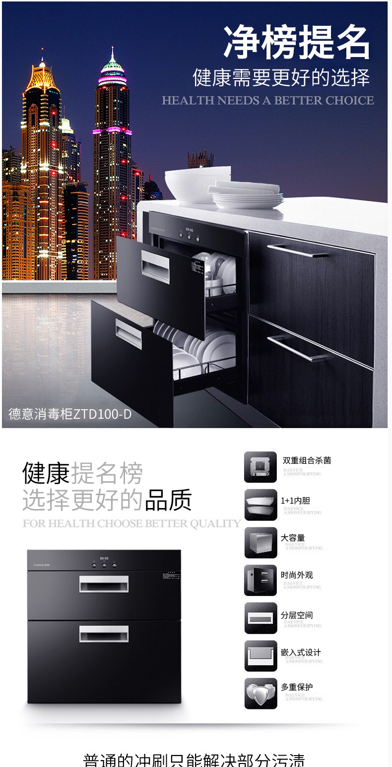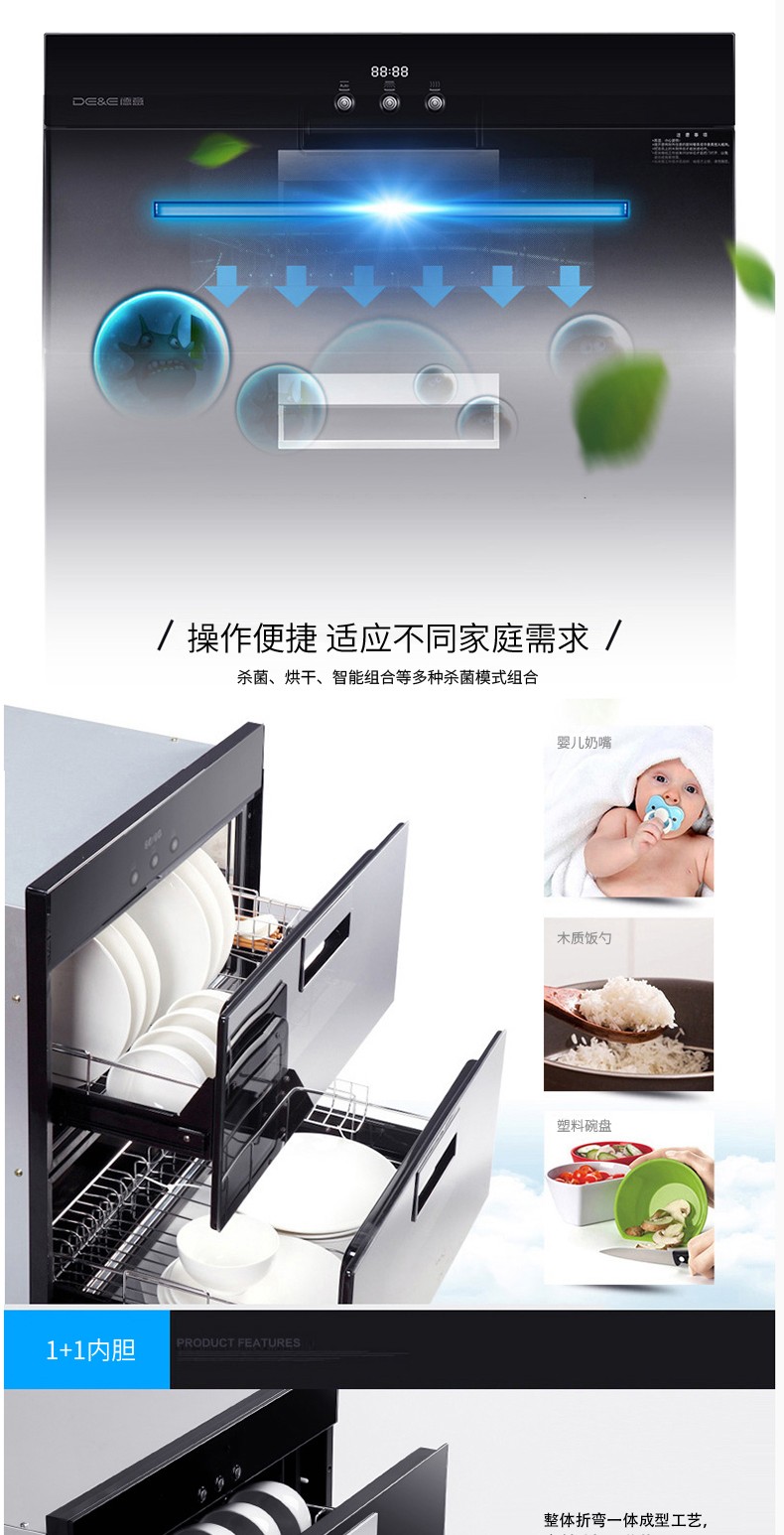首页 > 家用电器 / 厨房电器 / 大家电 > 厨房电器 > 其它 > 德意家用厨房智能消毒柜嵌入式双重臭氧杀菌紫外线大容量家电100D