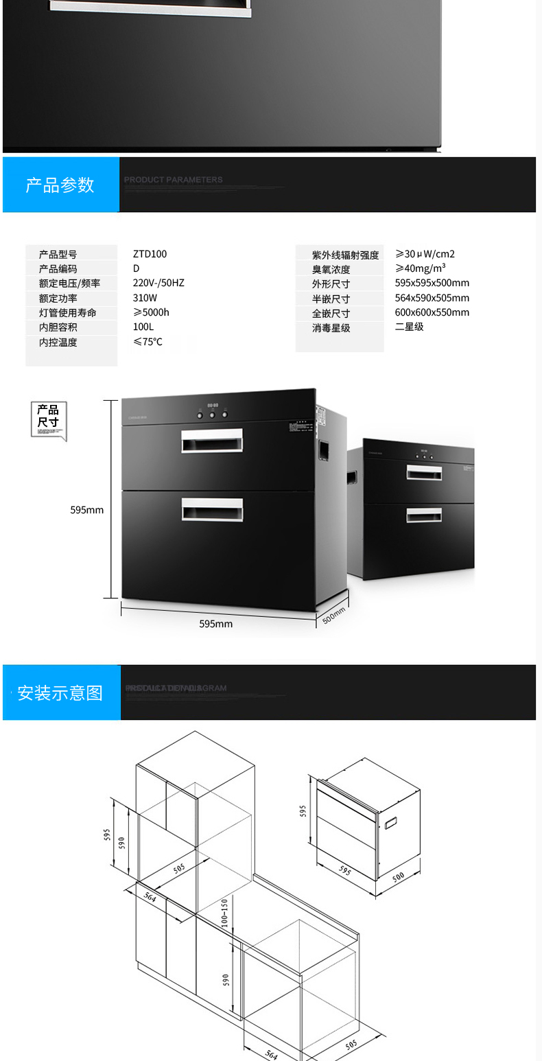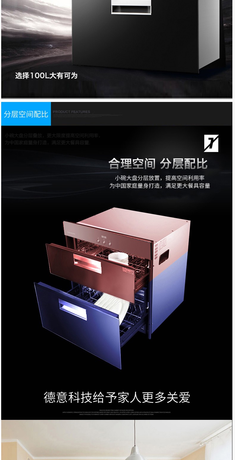 德意家用厨房智能消毒柜嵌入式双重臭氧杀菌紫外线大容量家电100D