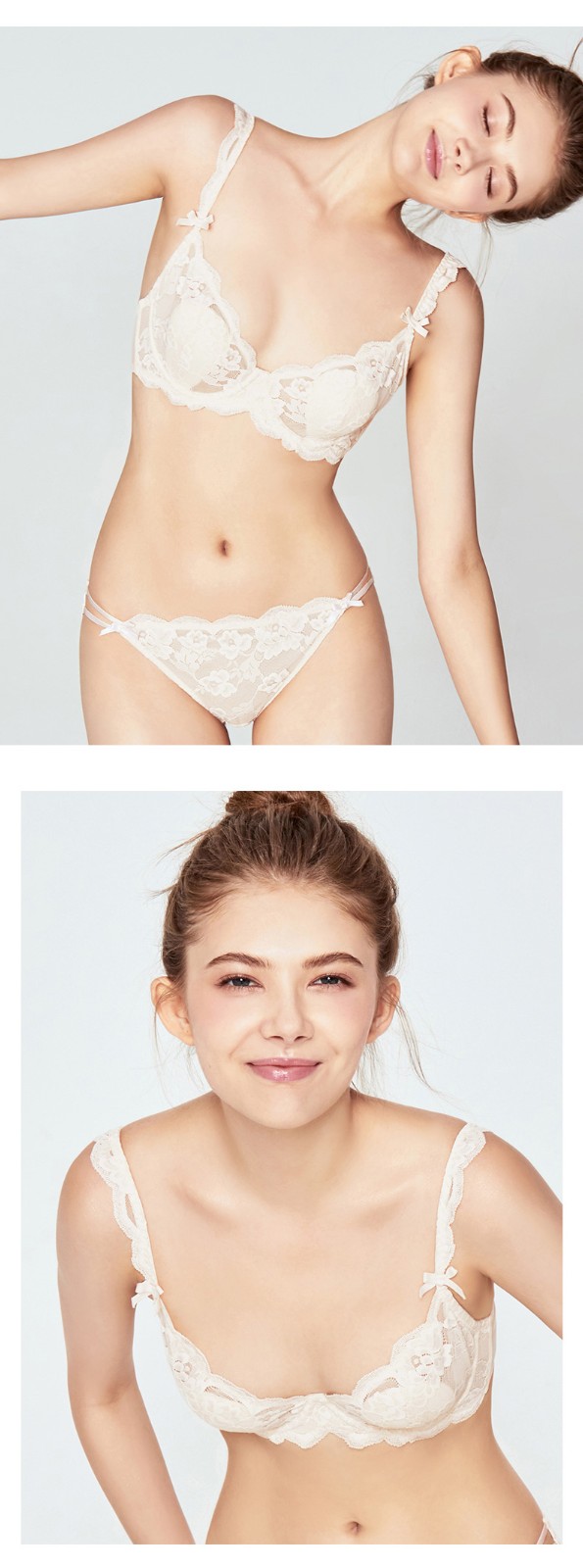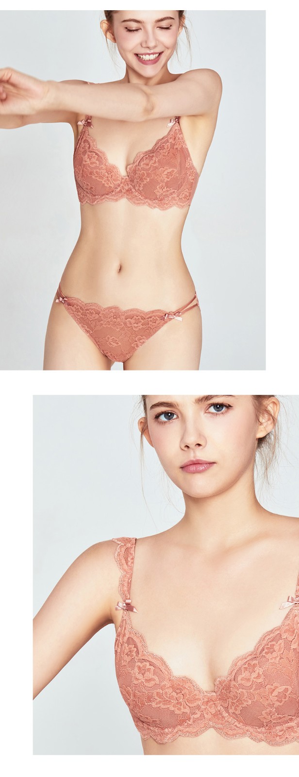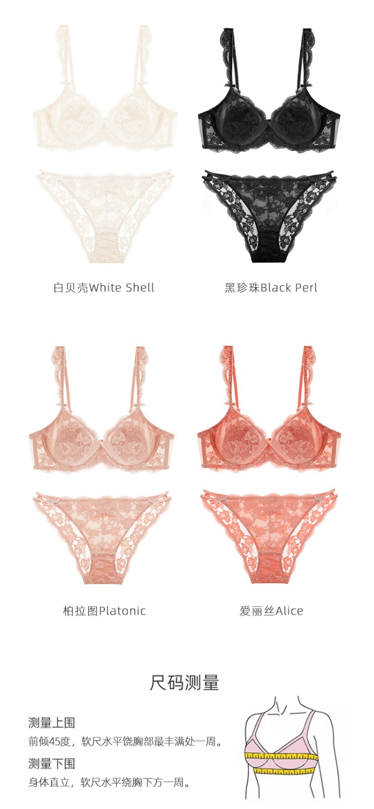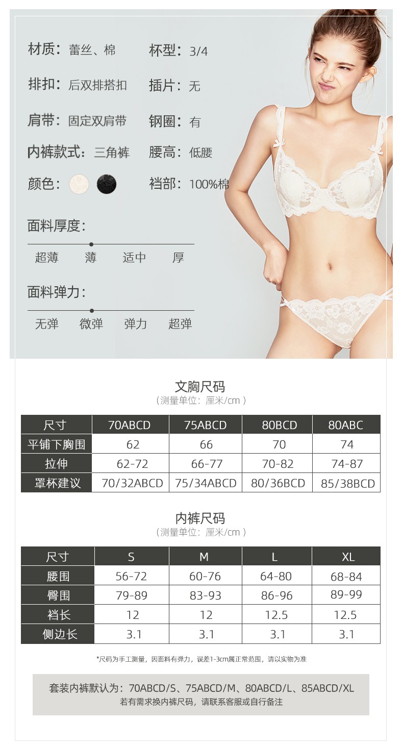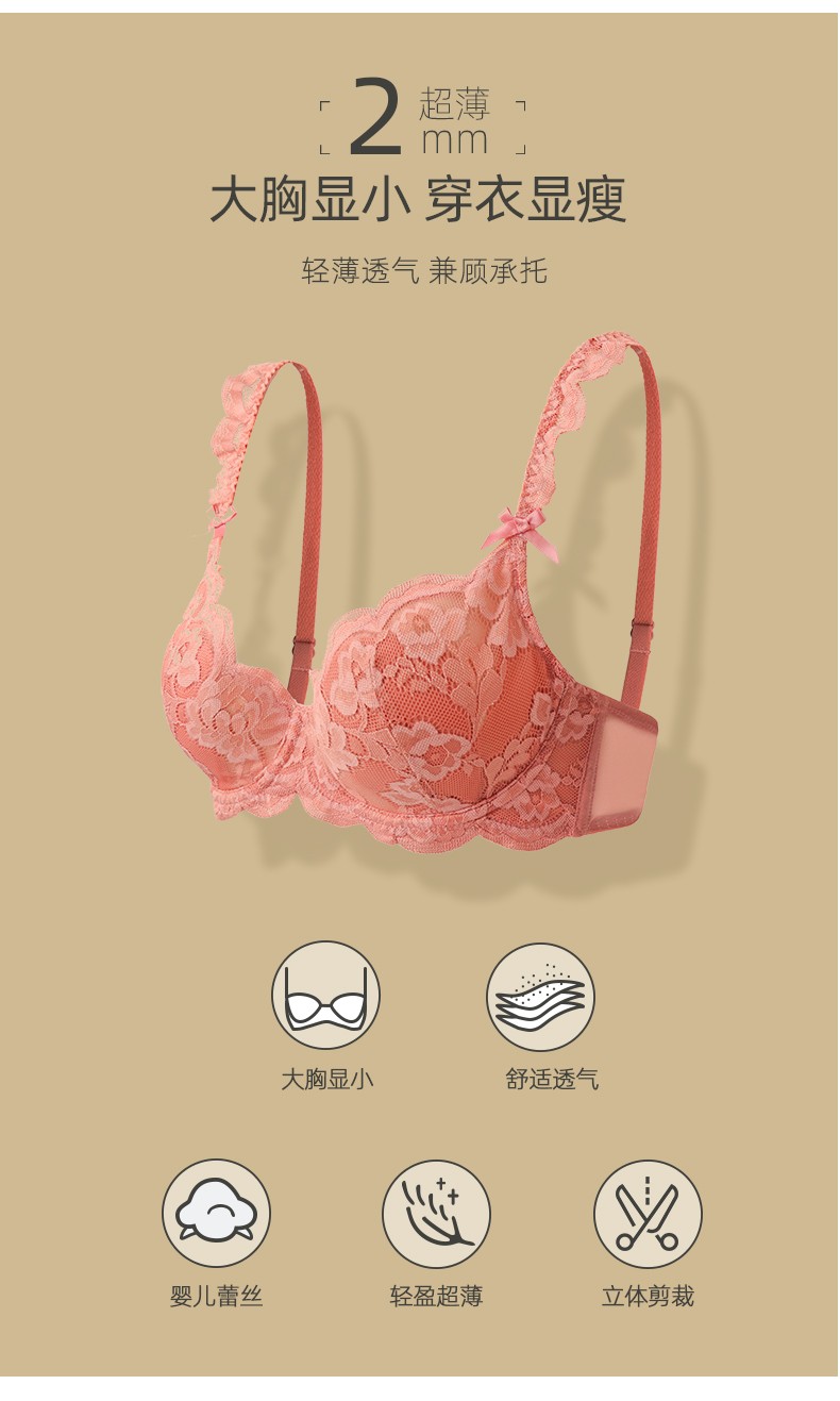 好奇蜜斯法式蕾丝内衣女大胸显小文胸套装超薄款性感bra少女日系