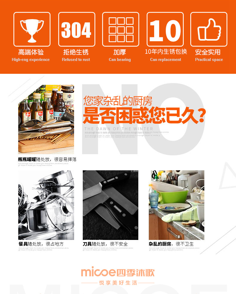 四季沐歌不锈钢刀架厨房多功能置物架菜刀砧板架收纳架子厨房用品