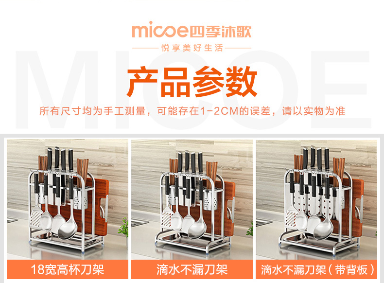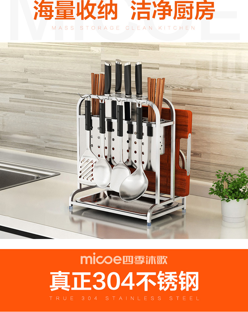 首页 > 家居 / 家装 / 厨具 > 厨具 > 厨房配件 > 四季沐歌不锈钢刀架厨房多功能置物架菜刀砧板架收纳架子厨房用品