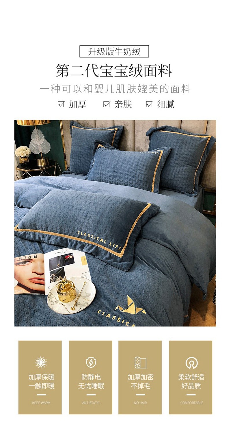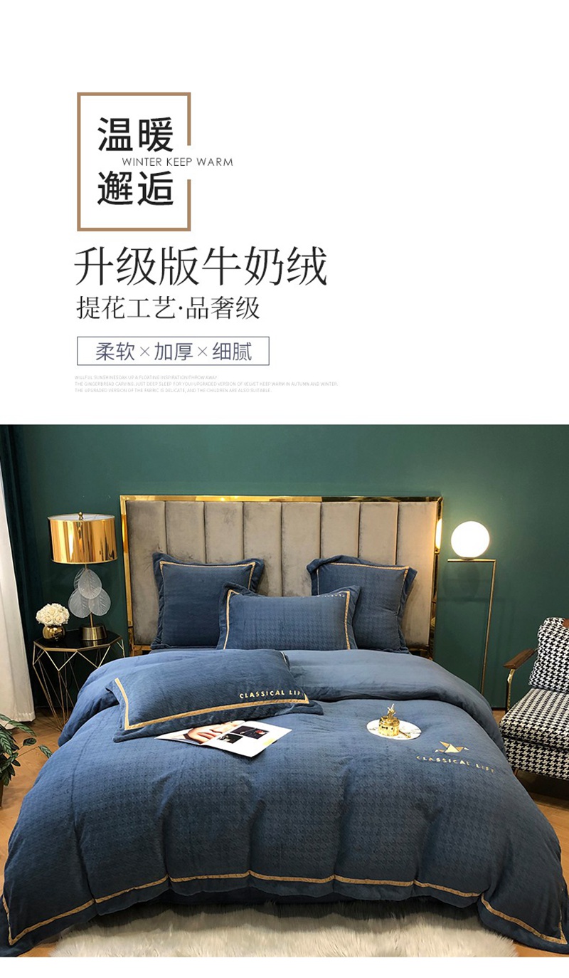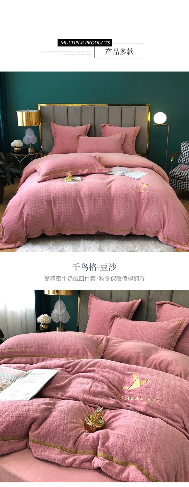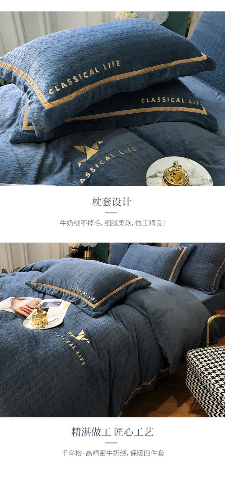 进口高端牛奶绒床上四件套加厚保暖被套双面珊瑚绒冬季千鸟格床品
