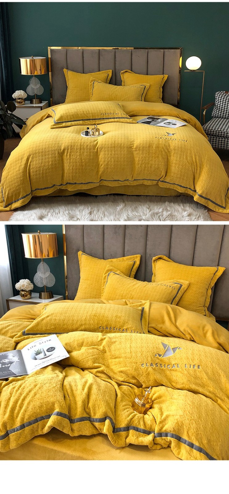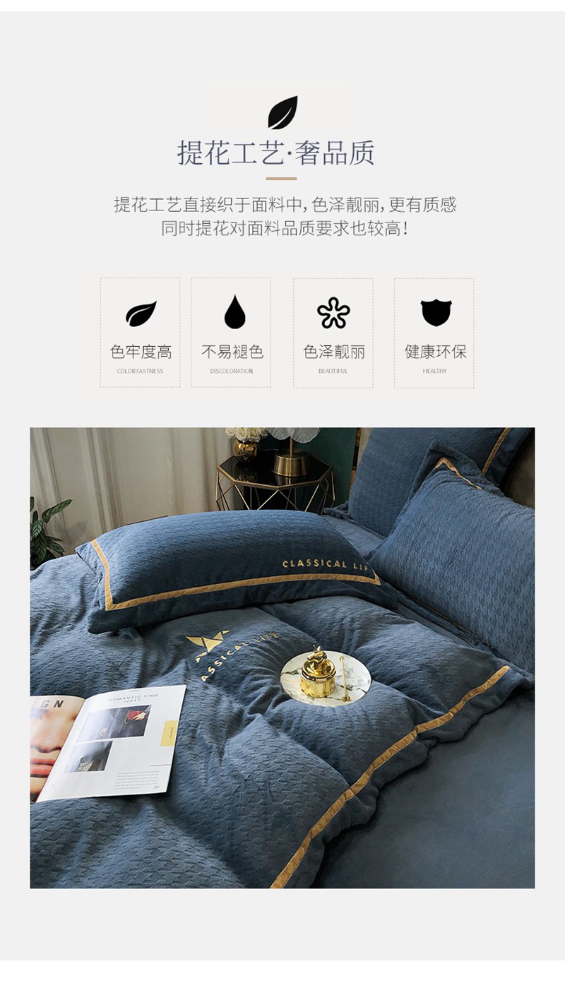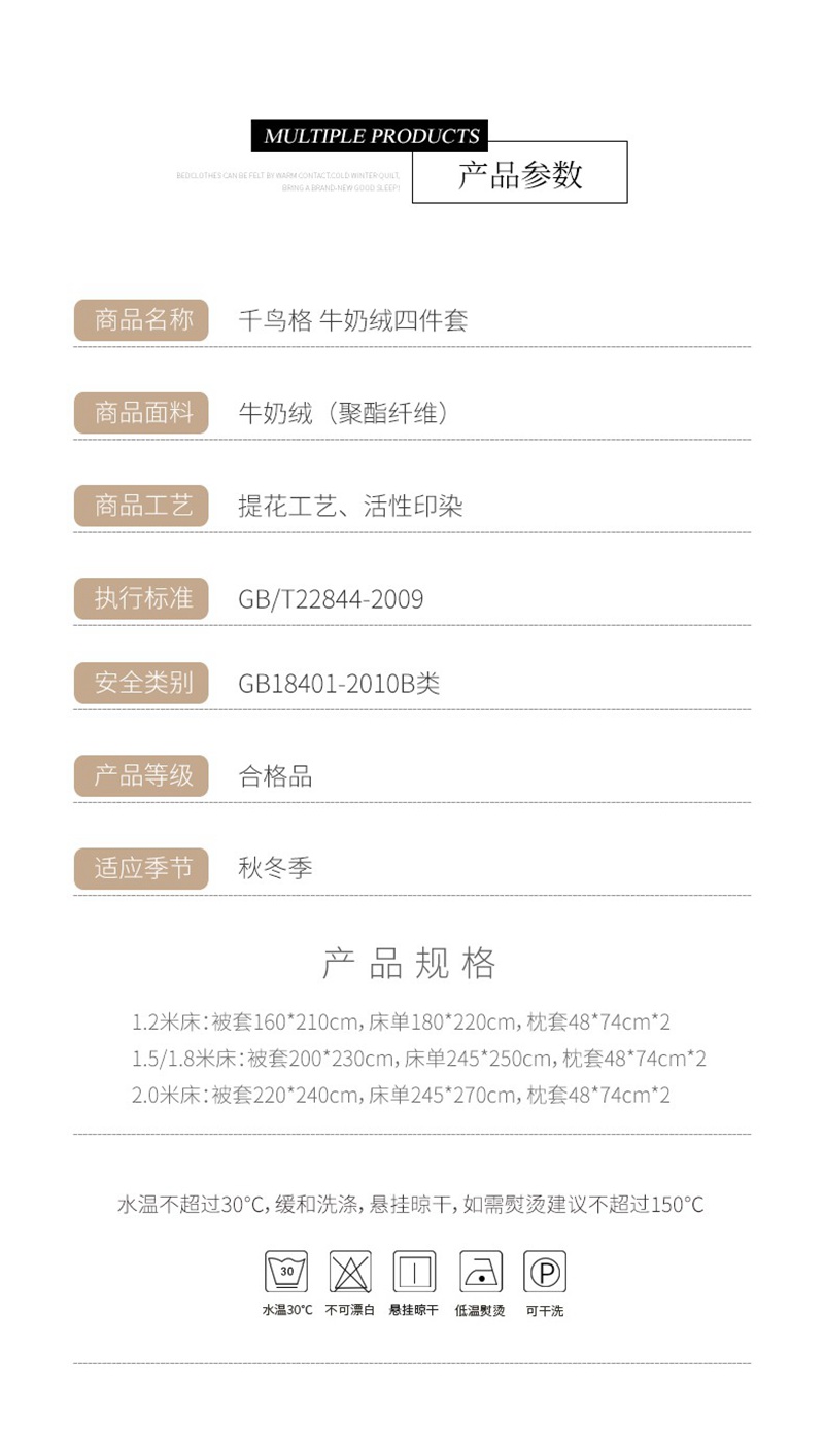 进口高端牛奶绒床上四件套加厚保暖被套双面珊瑚绒冬季千鸟格床品