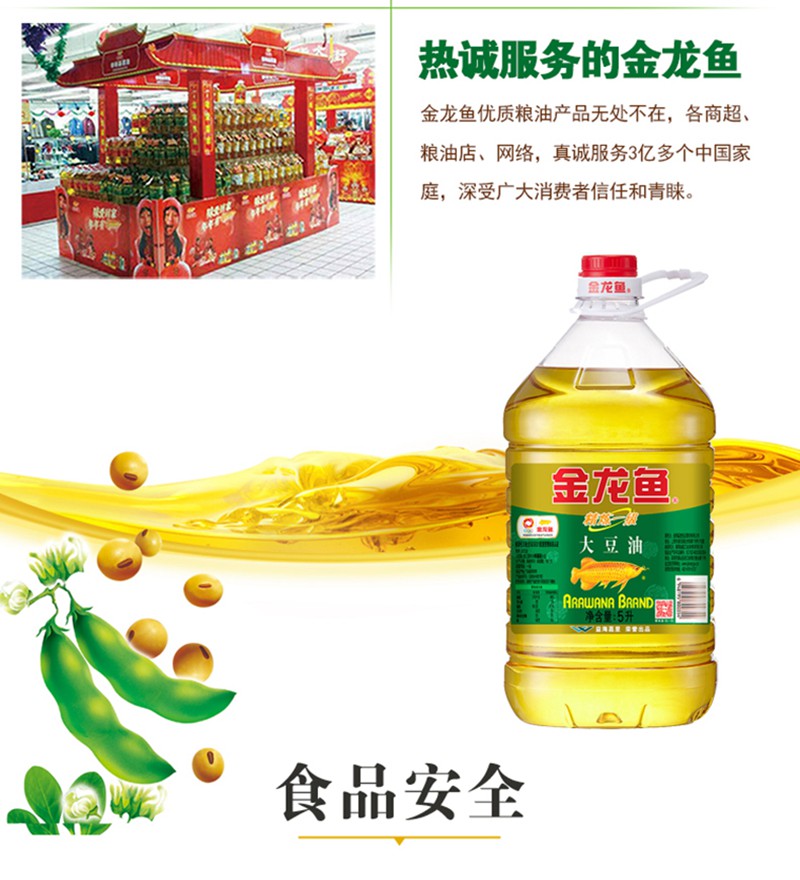 金龙鱼精炼一级大豆油5L大桶装 色拉油 炒菜烘焙食用油家用粮油