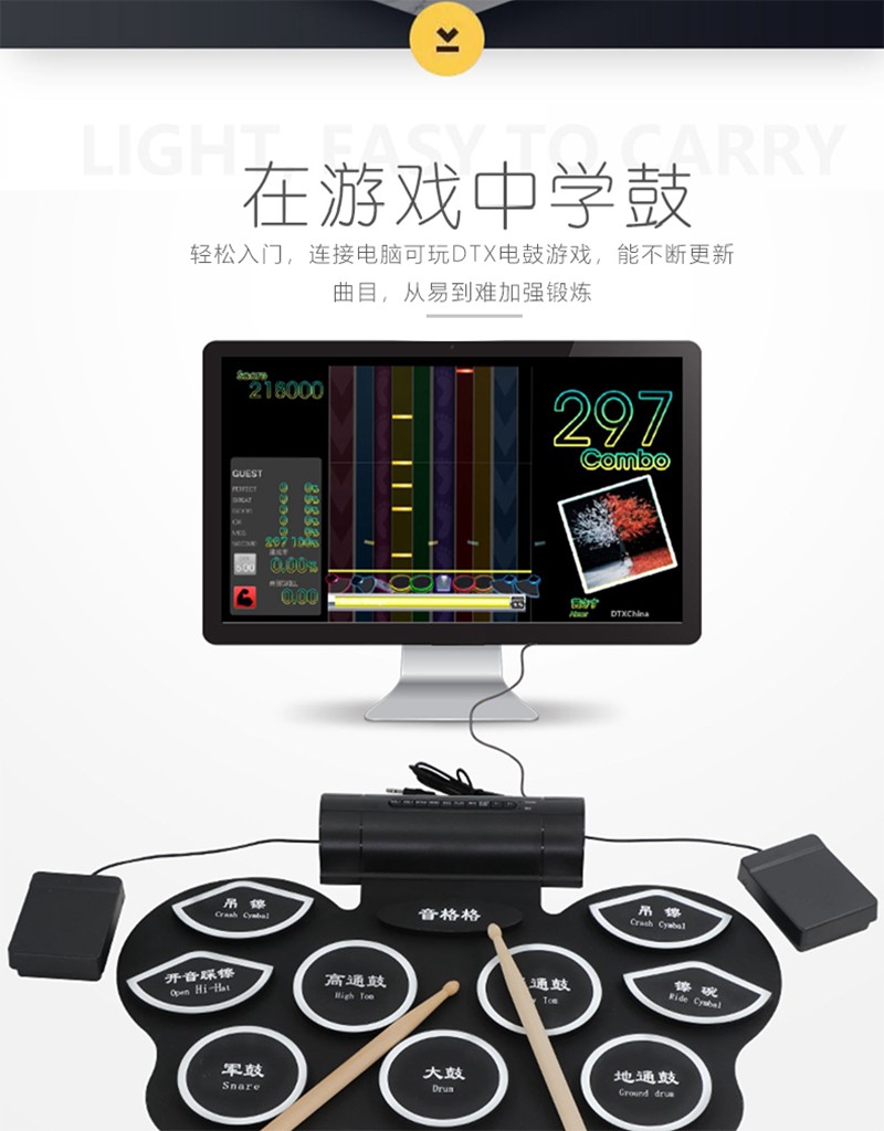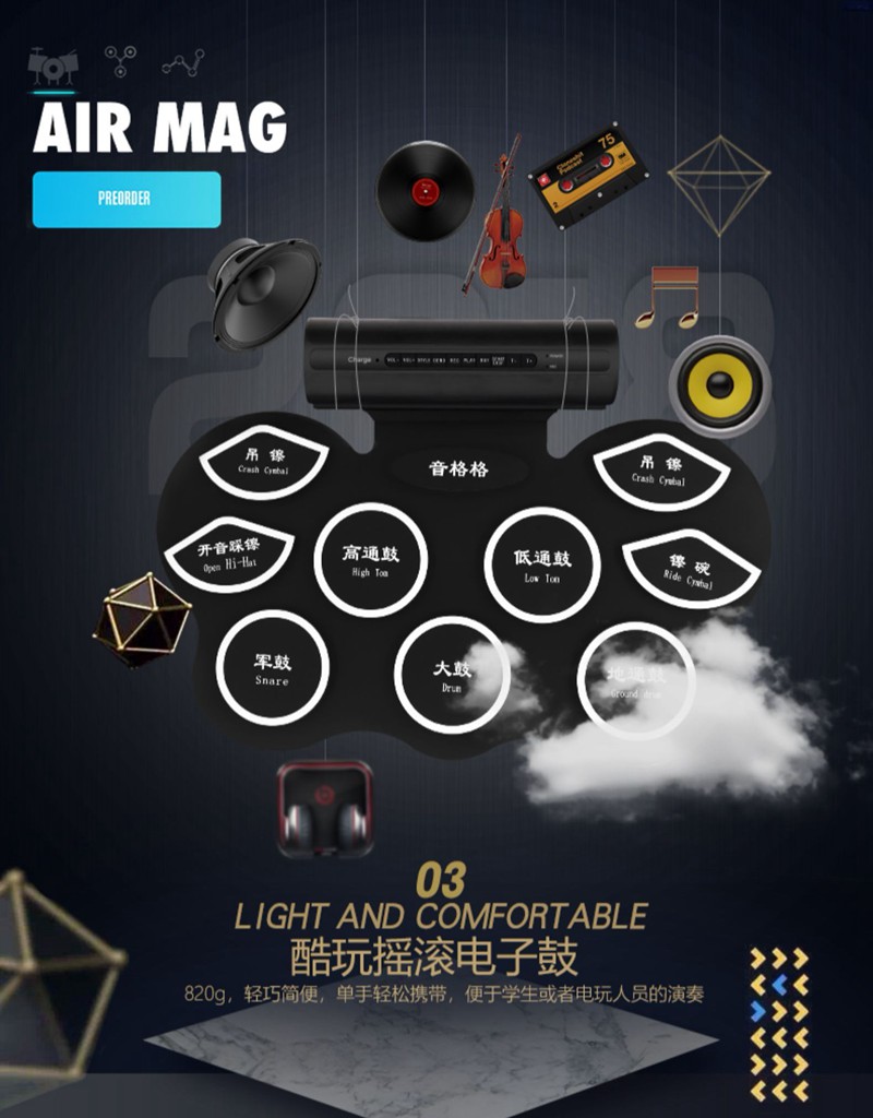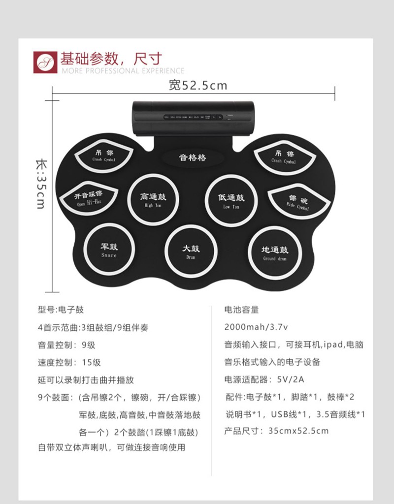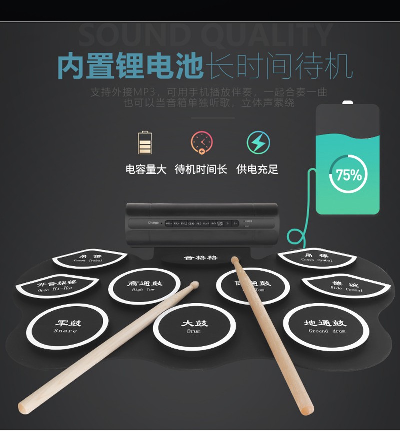 首页 > 母婴 / 玩具 / 乐器 > 乐器 > 打击乐器 > 手卷加大电子鼓爵士架子鼓儿童初学者家用练手神器便携式专业乐器